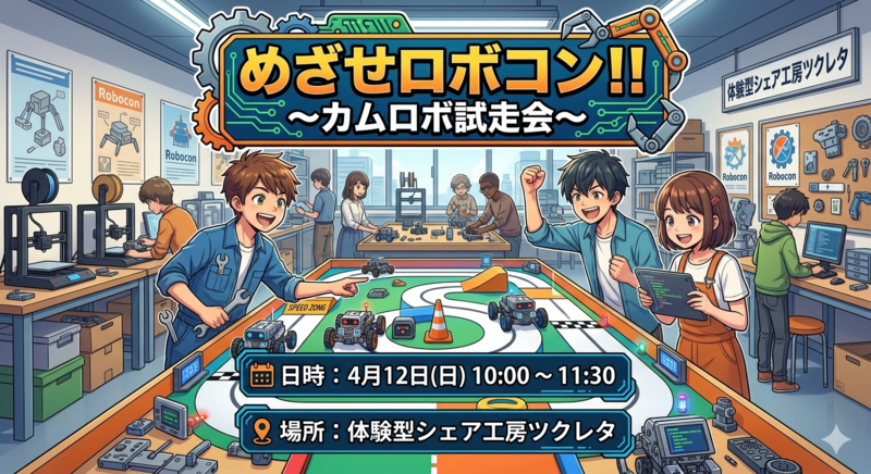 ツクレタで月一くらいの頻度で開催している「カムロボ試走会」も、もうn回目…って書こうとして、はて、いつ始めたんだっけ?となっています。今年の1月にイオンモールにブース出展させて頂くちょっと前からだから、もうすぐ半年近く?明日もやります。いよいよ来週末は宮交シティでも開催!